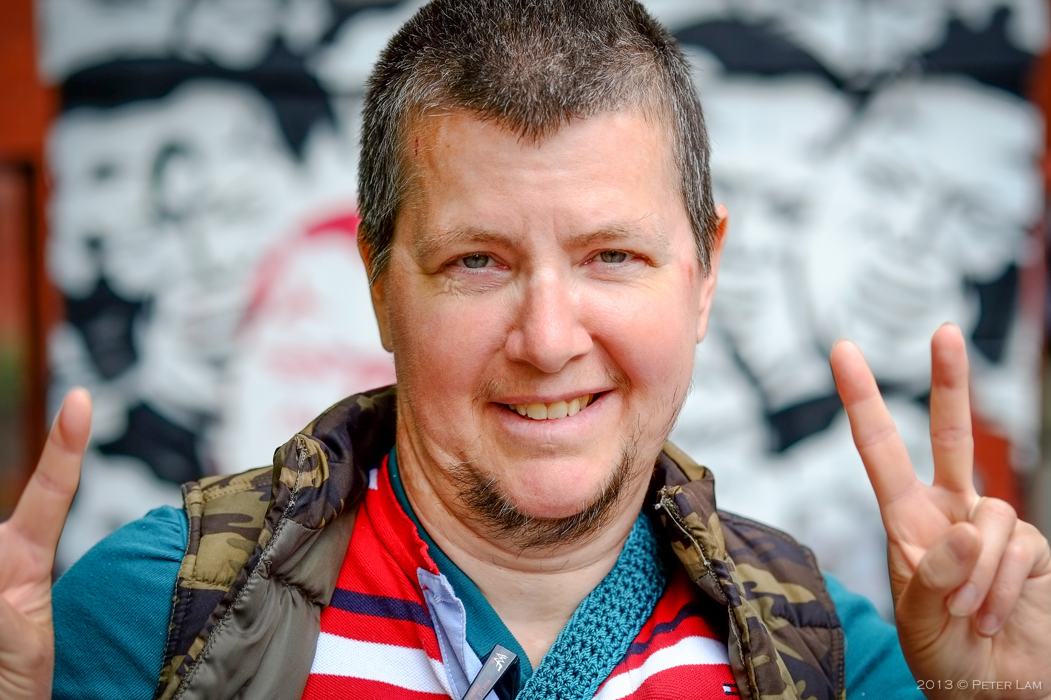 I was walking along Toronto’s “Graffiti Alley” south of Queen Street in the Fashion District when a young couple asked me to snap some photos for them. While doing that, I heard a voice shouting out “Hey take my picture too! Me and my monkey!” Well, nothing could be easier for my first portrait as I didn’t even have to approach her! As a matter of fact, I had seen Debbie a few minutes earlier across the street and thought to myself, “What a colourful character… it would be great to take her pic.”