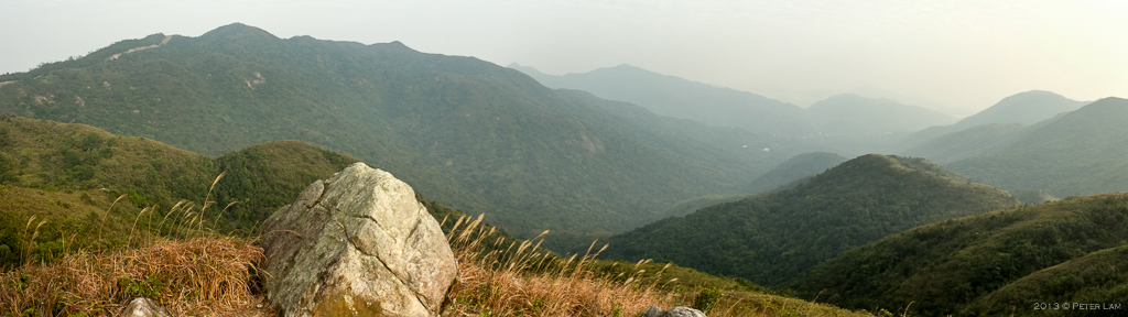 A nice panoramic view even through the haze from Ngau Yee Shek mountain. You can make out Sharp Peak in the distance, the highest point in Sai Kung district.