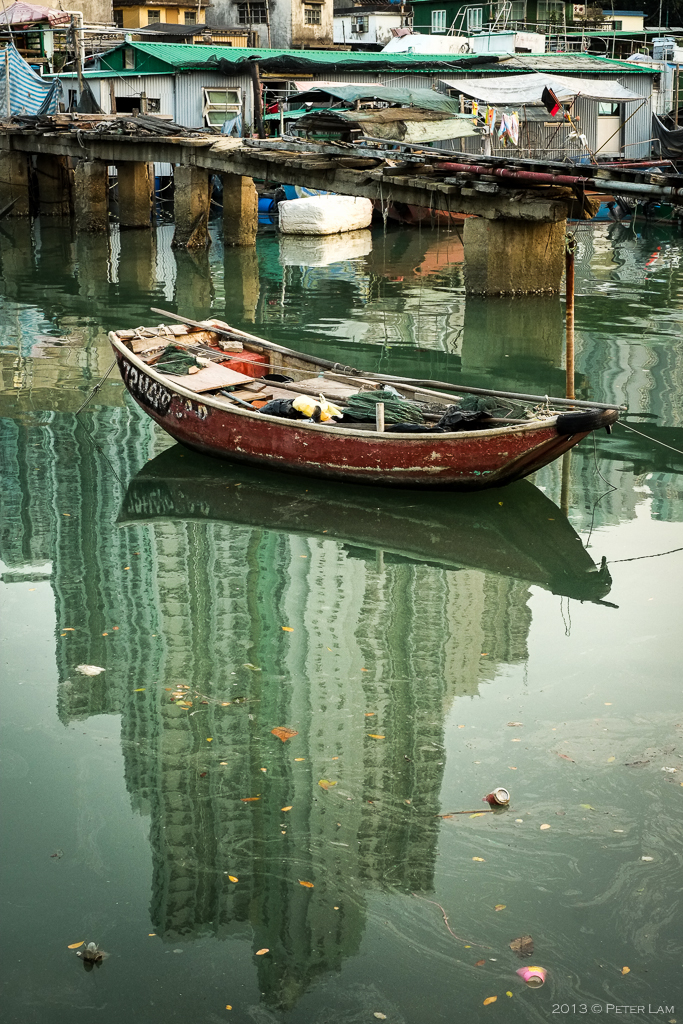 At the small harbour, dirty water and refuse is common. Residential highrises tower over the village.