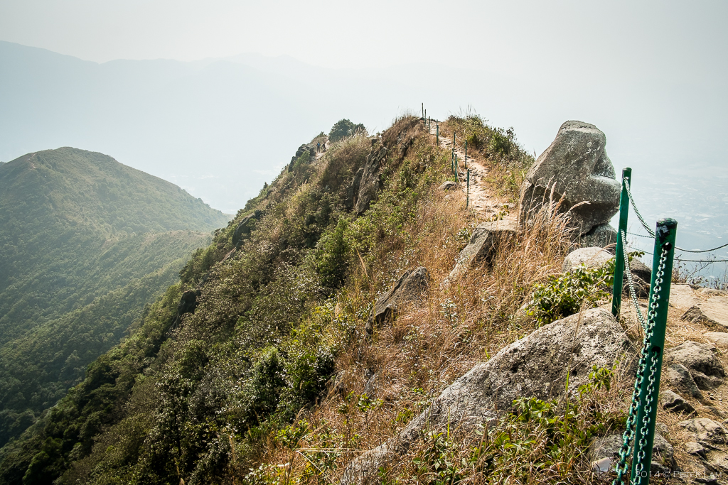 After a two week break, it was back to some hiking this weekend. The Tai To Yan trail runs along a mountain ridge through Lam Tsuen Country Park in the northwestern New Territories. Tai To Yan (大刀屻 – literally Big Knife’s Edge), also known as Razor Back, is so named because the trail follows the very top edge of the mountain range with fairly steep falloffs on either side.