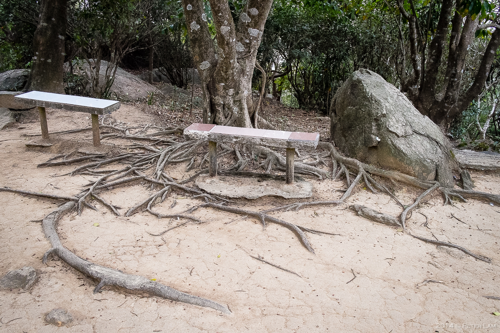 The trailhead starts at the Kadoorie Farm and Botanical Gardens, easily accessed by taxi or bus from Tai Wo. The trail snakes north along the ridge and is mostly exposed, so it can be a tough walk in the sun. The two main peaks of Tai To Yan and Pak Tai To Yan mountains top at 566m and 480m, so it’s a strenuous climb right from the start and plenty of elevation changes along the way. On our hike, we connected to another trail towards the end (the Butterfly Mountain trail) that eventually ended in Fanling Station. On a clear day, this hike offers great views of the countryside and towns below – but unfortunately winter haze and pollution limited visibility this weekend. Still, a good hike and a pretty serious workout.