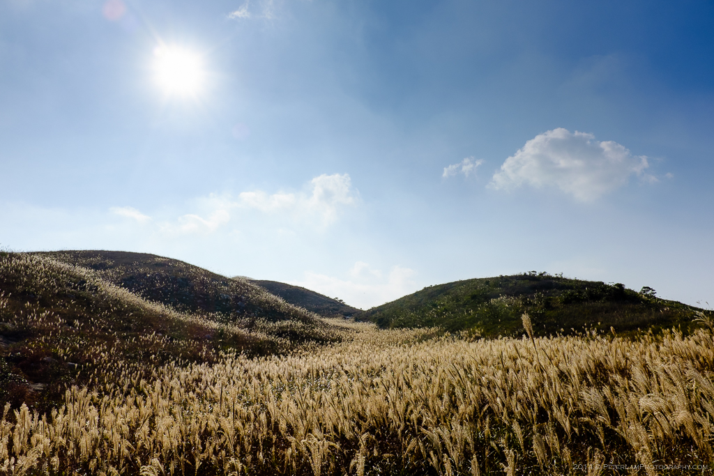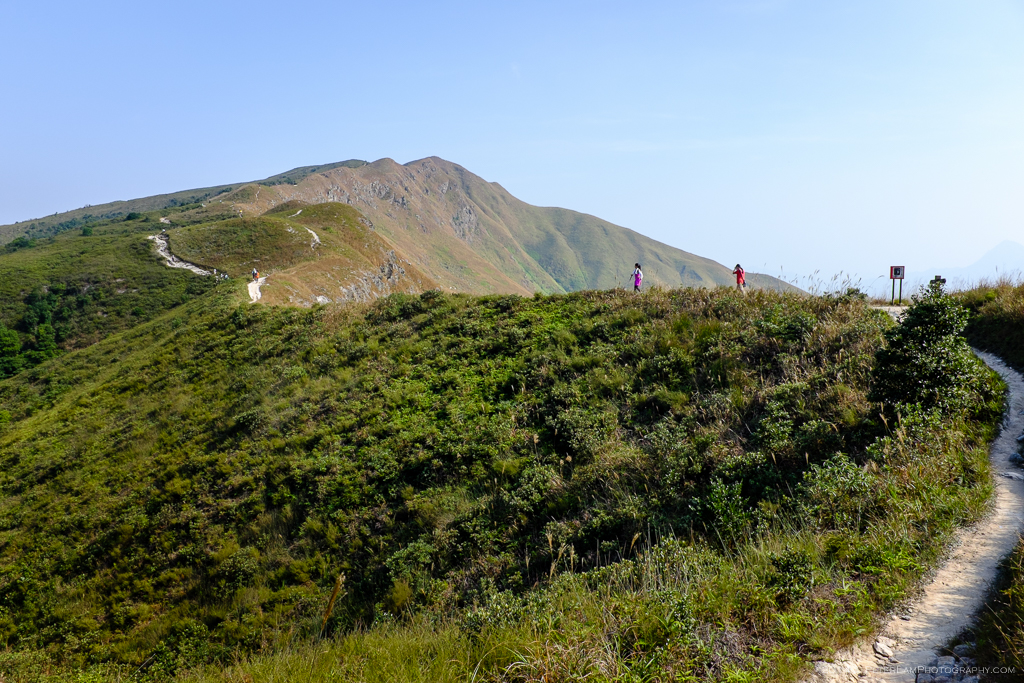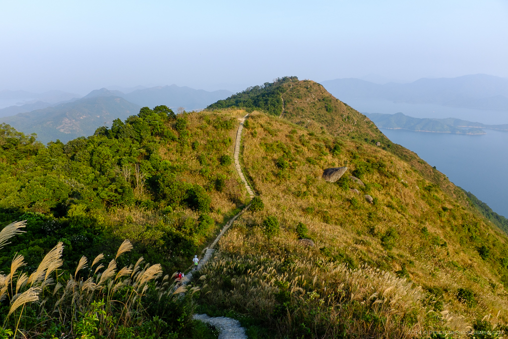 The effort is well worth it. Even on a somewhat hazy day, there are great views of Tolo Harbour and the Plover Cove reservoir to the south, and sprawling Shenzhen on the mainland to the north. You are transported to a world of rolling hills and valleys, jagged rocky outcrops, and grass towering above your head, all by following a well defined trail snaking along the mountain ridge. There is a certain peace here that’s hard to describe – photos don’t really do it justice. Bring plenty of water and a snack – there are no opportunities to resupply on the way. You’ll have plenty of company though, being a popular weekend hike.