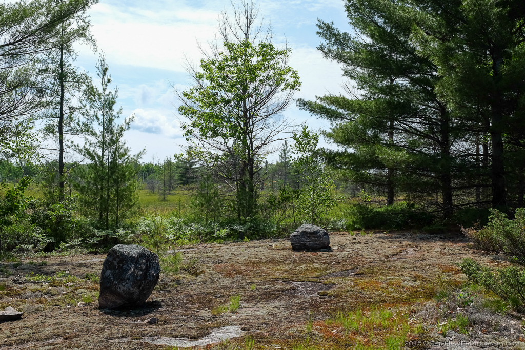 It’s an interesting area, though. The landscape is characterized by ridges and troughs in the bedrock, filled with wetlands and swamps and a fair amount of animal wildlife around the ponds (including a sighting of the rare Eastern Massasauga Rattlesnake). I’ll definitely be returning in the fall for some night photography when the skies are clearer, the temperature lower, and the insects have gone to sleep.