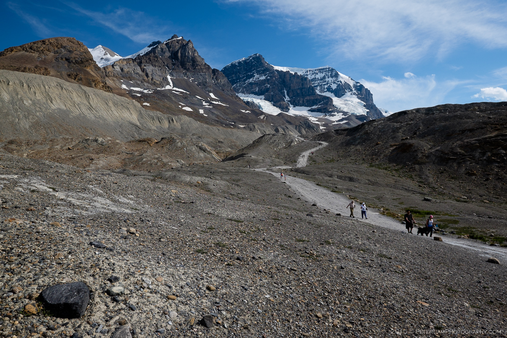 The Athabaska Glacier currently recedes at a rate of 5m per year – so you better hurry if you want to see it! The impact of climate change is clear here.