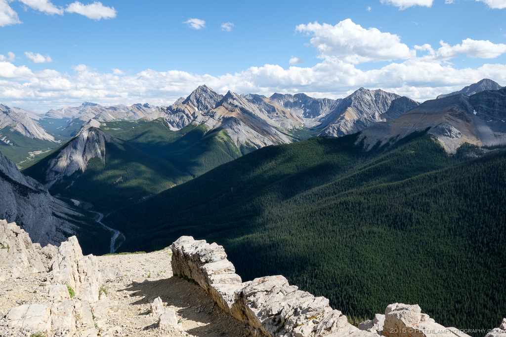 The first two-thirds of the way is a gradual uphill slog through some dense woods and switchbacks, with not much to see in terms of scenery. However, as soon as you clear the treeline, views of the valley below open up beautifully. We could make out our starting point at the Miette Hotsprings, and Ashlar Ridge just beyond.