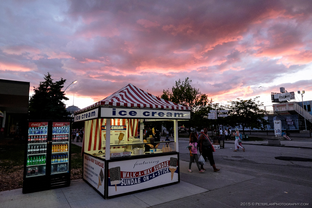 Some friends and I paid a visit on opening day when, thankfully, tickets are more reasonably priced. The Ex is at its prettiest in the evening when the midway rides light up the night sky.