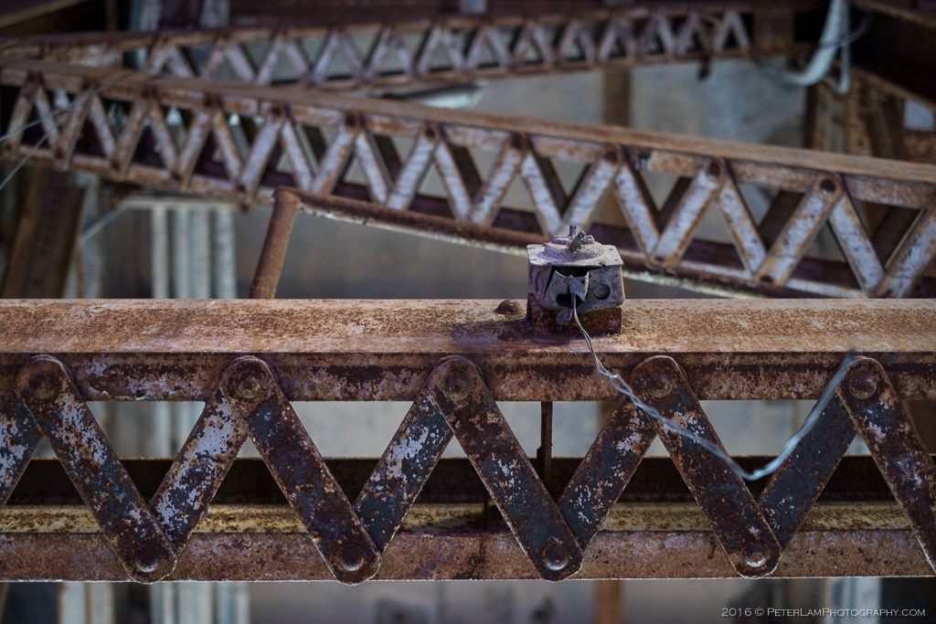 On my visit, the one thing that immediately strikes me is the size of the building. It is absolutely huge. The towering smokestack, a mainstay of the city’s waterfront and at 215 meters one of the world’s tallest, is even more imposing up close. Entering the space is to explore a vast cavern of criss-crossed metal beams, twisted wires and pipes, and massive concrete blocks. A monument to Toronto’s industrial past, the Hearn is a real treat for urban photographers and adventurers, and normally off-limits to visitors. (In 2008 a man slipped past security to take photos, lost his balance and plummeted down a coal chute – he had to be rescued but later succumbed to his injuries.)