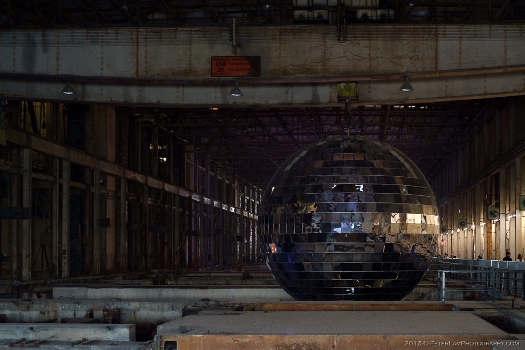 The effort needed to prepare the space for the festival must have been immense. Some sections are paid-only access, such as the stage areas for plays and music performances. Most other areas are free access – these include art installations and gallery spaces showcasing both local and international artists. On the upper level, the old control room has been converted to an exclusive French restaurant (fully booked, of course). At the far end of the building, possibly the most impressive installation is a giant mirror ball suspended from from a ceiling crane. “One Thousand Speculations” by Canadian artist Michel de Broin is the world’s largest mirror ball at 7.9 meters in diameter and set with 1000 mirrors. Rotating with the spotlights on, the space is transformed into a magical starry wonderland.