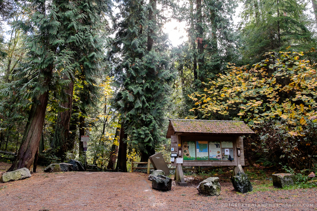 On my recent visit to Vancouver, a family roadtrip to Whistler meant an opportunity to take in the attractions along this famous stretch of highway. Over the course of two days on Thanksgiving weekend we stopped at some of the most popular sites along the way. Though October weather was typically wet and dreary, we did get the occasional lucky breaks – just enough for some fall foliage photo ops.