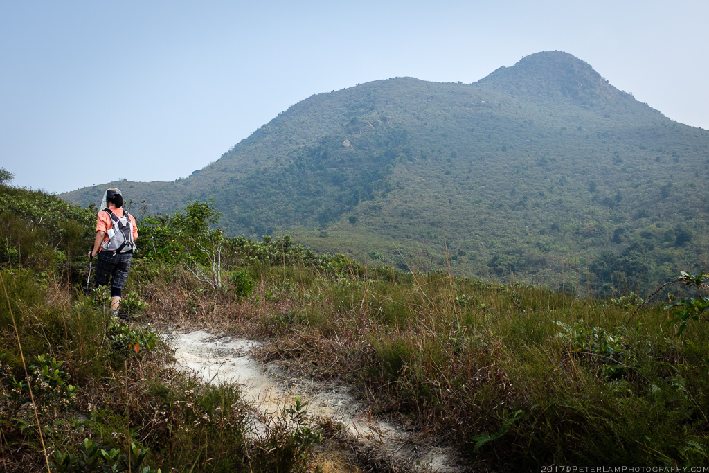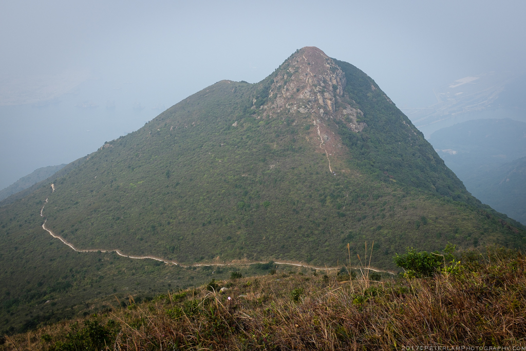 A look back at Por Kai Shan mountain. Hikers can bypass the peak by hiking the trail along the base.