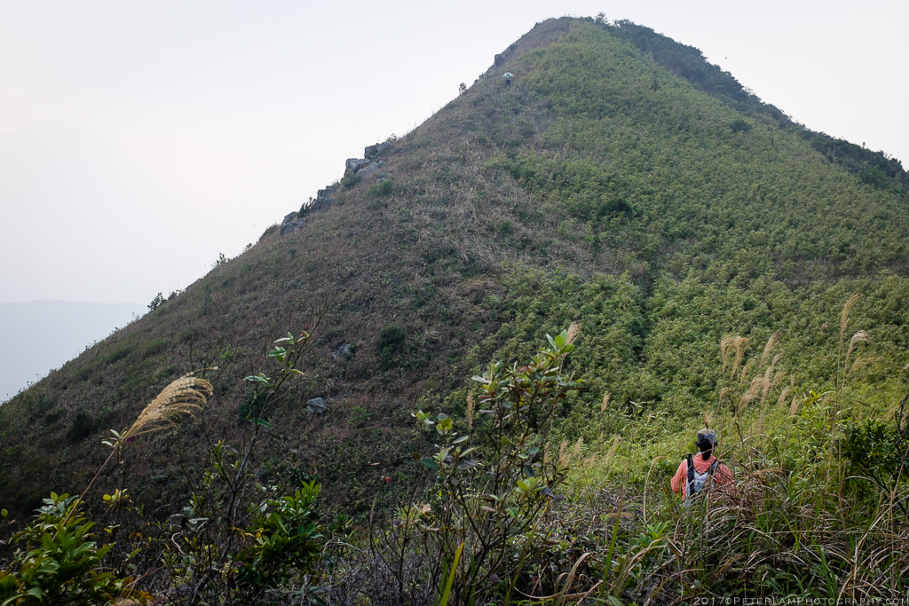 In contrast, the ascent to Pok To Yan was relatively easy with a gradual climb through some waist-level vegetation. The peak is the start of a ridge hike that extends westward towards our final destination at Wong Lung Hang. Most of the trail is well-defined and often marked with ribbons, but as you progress along the ridge the vegetation gets increasingly dense.