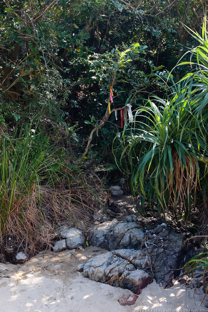 As you approach Nam She Wan, Sharp Peak looms larger and larger, and the steep northern face is intimidating indeed. There were a few campers on the beach but otherwise we had the trail to ourselves this day. On the sands we take a break, have a snack, and prepare ourselves mentally for the climb to come.