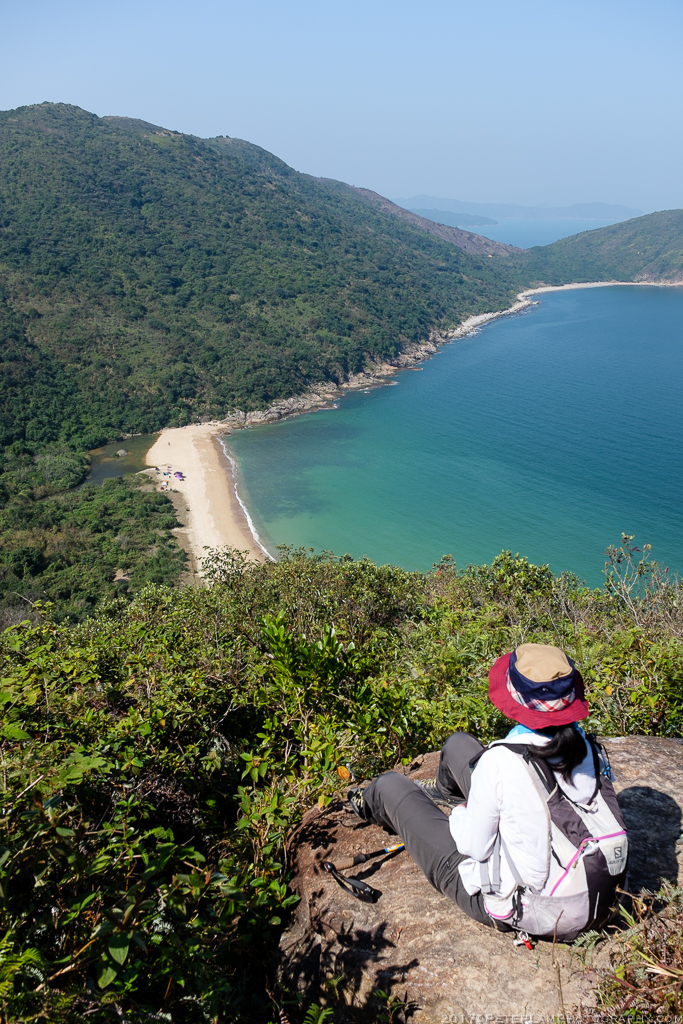 After a well-deserved break at the peak, we started our way down the mountain along the south eastern trails towards Tai Wan beach. Much of the route was on dirt trails with loose gravel but thankfully nowhere near as steep as the northern side. The views of Tai Long Wan bay and its famous beaches were breathtaking.