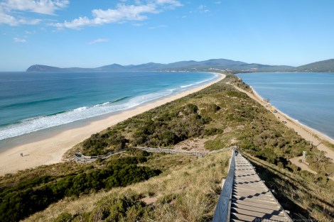 The long island has a total length of almost 100km, with North and South Bruny separated by a narrow sandy isthmus called The Neck. Here you can climb a long flight of steps to a viewpoint for a fantastic 360 degree view of the surrounding bays.