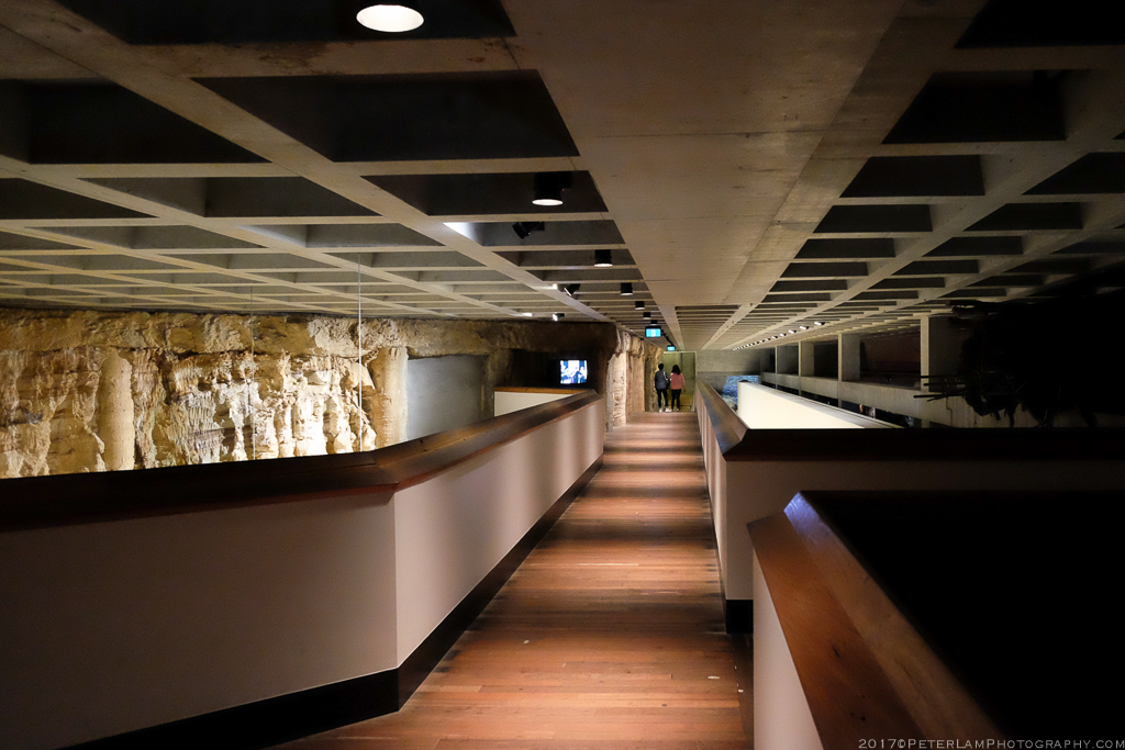 The building itself is a bit of an architectural attraction – ostensibly only a storey tall, it is actually three levels deep built into the cliffs of the peninsula. Starting your visit feels like descending into a dungeon, and there are intentionally no windows in the exhibition space.