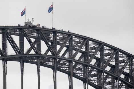 People taking part in the Harbour Bridge Climb. Probably not a good idea in a thunderstorm…