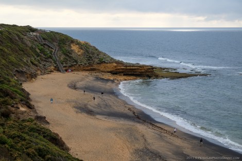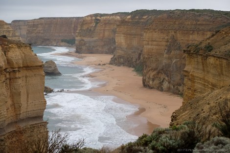 Just a little further west of the Twelve Apostles we arrive at Loch Ard Gorge (named after a 1878 shipwreck in the area), part of the Port Campbell National Park. Here a staircase leads down to a picturesque beach that looks straight out of a movie set… a model of natural beauty and coastal wilderness. And the sun makes an appearance, just in time!