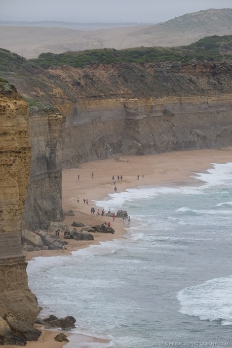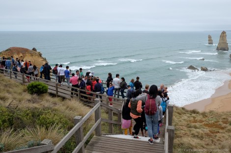 Continuing west, we reach what is probably considered the premier attraction in the area – The Twelve Apostles. These are a number of limestone stacks just off the shoreline, dramatically punctuating the rugged coast for several kilometers. Due to continual natural erosion activity there are only eight “apostles” left standing. The formations are a huge tourist draw, as evidenced by the throngs of visitors at the various lookouts.