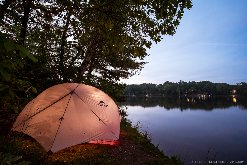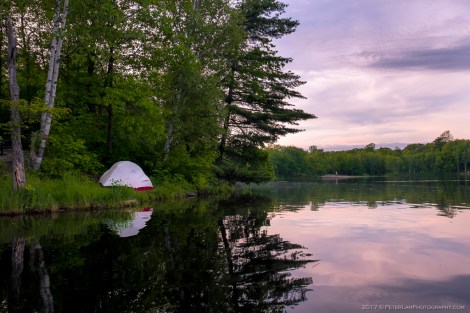 As part of our butter tart festival weekend, my camping buddies and I spent two nights at Six Mile Lake Provincial Park, about 30 minutes north of Midland in Ontario’s cottage country. Booking early ensured a waterfront site, and it did not disappoint! While the park has many sites suited for car- and trailer-camping, being close to the lake meant it was very convenient for canoe launching. Although I usually prefer backcountry sites for their isolation and tranquility, it’s hard to beat drive-in sites for ease of access and convenience (and showers).