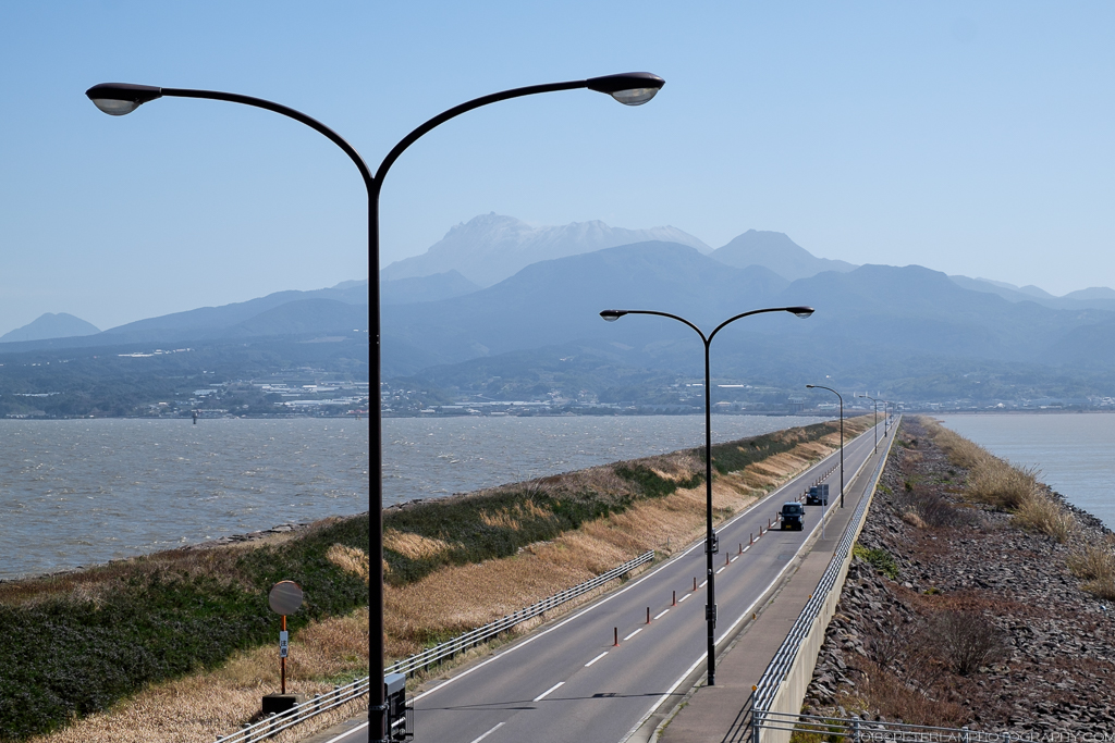 A winding mountain road that will bring you two observation decks for great views of Shimabara peninsula. At the Pass, there is a visitor center and a cable car (ropeway) that will take you even closer to the peaks (though during my visit, everything was closed due to strong winds). For the adventurous, several hiking trails traverse the national park area.