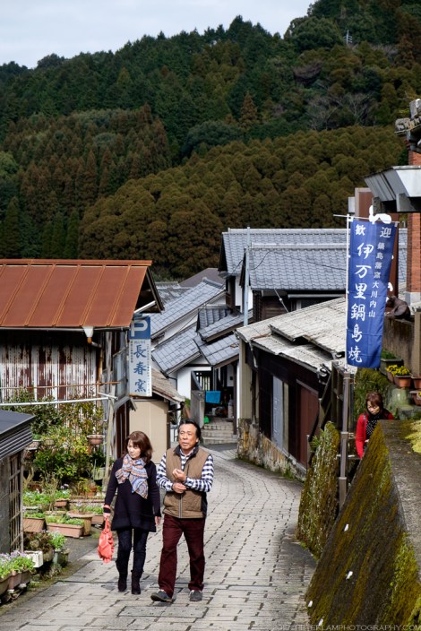 Today Okawachiyama is a charming village consisting of about 30 kilns and pottery workshops, with an atmosphere that transports visitors back to the Edo Period. Small storefronts line the narrow lanes, and examples of fine porcelain are exhibited everywhere, showcasing the skills of the master artisans. Across the village a graveyard and monument is dedicated to the Korean potters who made this area the birthplace of Japanese porcelain.
