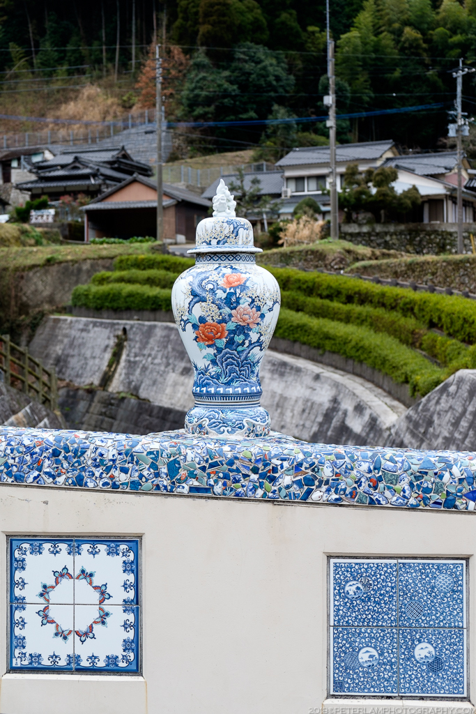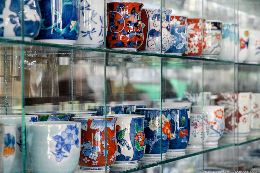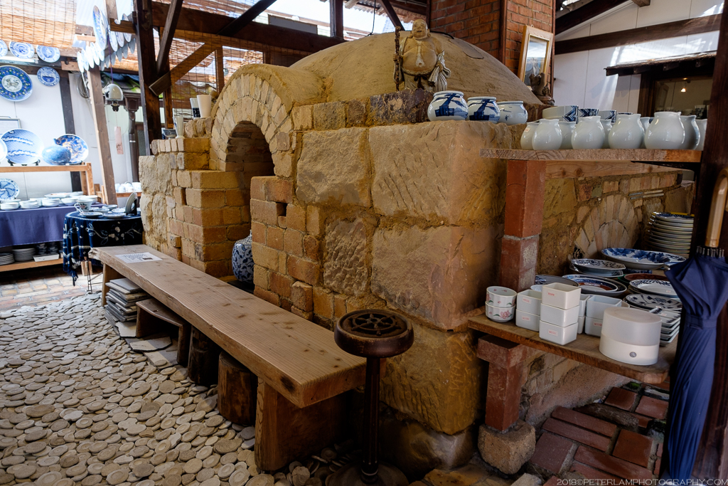 Today Okawachiyama is a charming village consisting of about 30 kilns and pottery workshops, with an atmosphere that transports visitors back to the Edo Period. Small storefronts line the narrow lanes, and examples of fine porcelain are exhibited everywhere, showcasing the skills of the master artisans. Across the village a graveyard and monument is dedicated to the Korean potters who made this area the birthplace of Japanese porcelain.