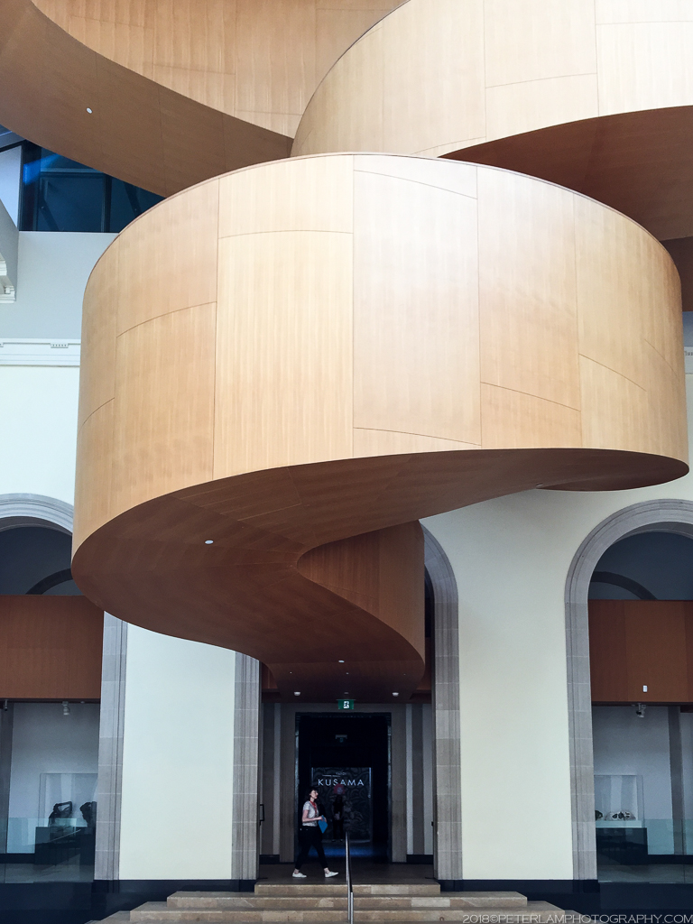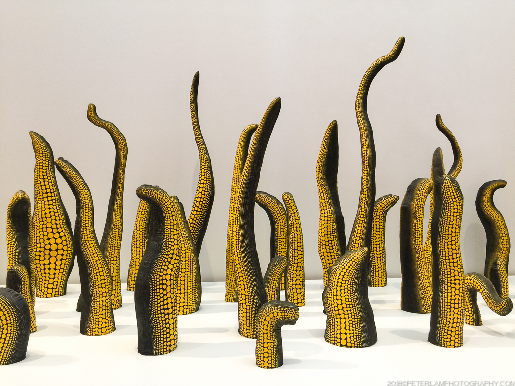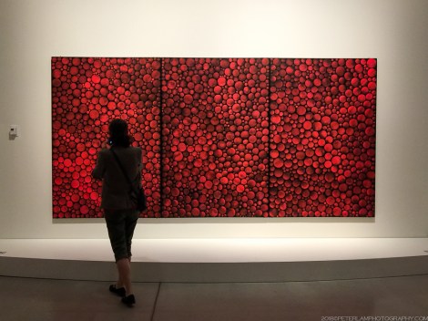 The AGO exhibition includes over 90 of Kusama’s works dating from various periods throughout her 65-year career, but the key attractions are the Infinity Rooms and various “peepholes” that allow you to contemplate the infinite through mirrored interiors. Some of them include spectacular flickering light displays. Due to their small size and popularity, access is limited to 2 or 3 visitors at a time, with a time limit of 20 or 30 seconds. So yeah, enjoy but do it quickly!
