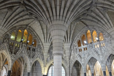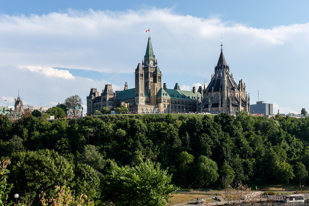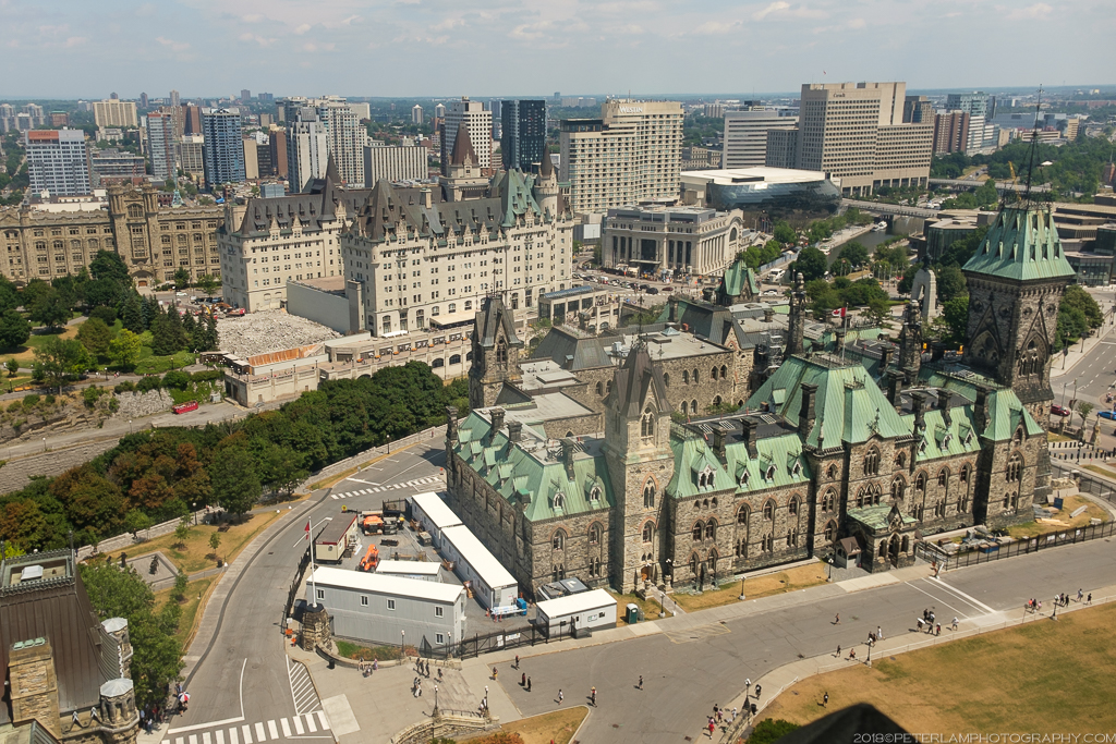 Initial construction began in 1859, but it was not until after a fire in 1916 that destroyed the entire Centre Block (though the Parliamentary Library was thankfully saved) that the structures were rebuilt from the ground up to what we see today. Completed eleven years later the new Centre Block and Peace Tower, in commemoration of Canadians who lost their lives in the First World War, became the present landmark on Parliament Hill.