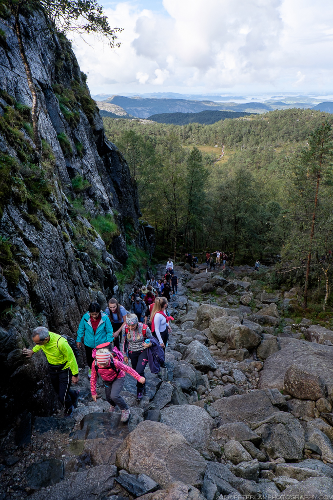 Preikestolen was the first hike on our Norwegian roadtrip. After an overnight sleeper train from Oslo to Sandnes (a Stavanger suburb), we picked up our rental car and headed directly to the trailhead. With good weekend weather, the place was absolutely packed!