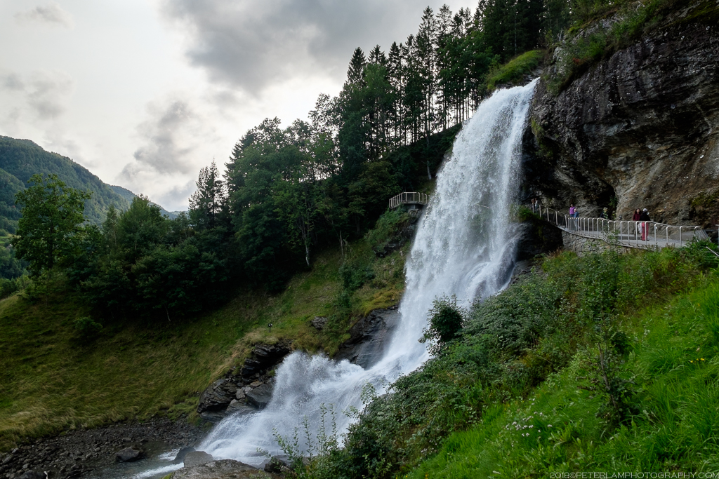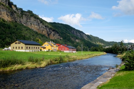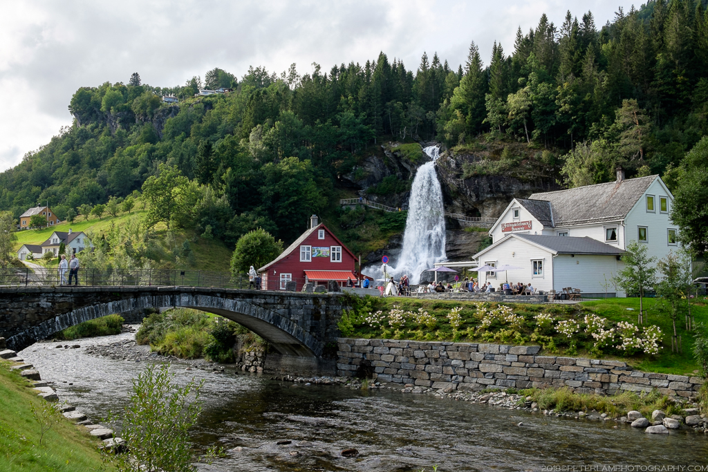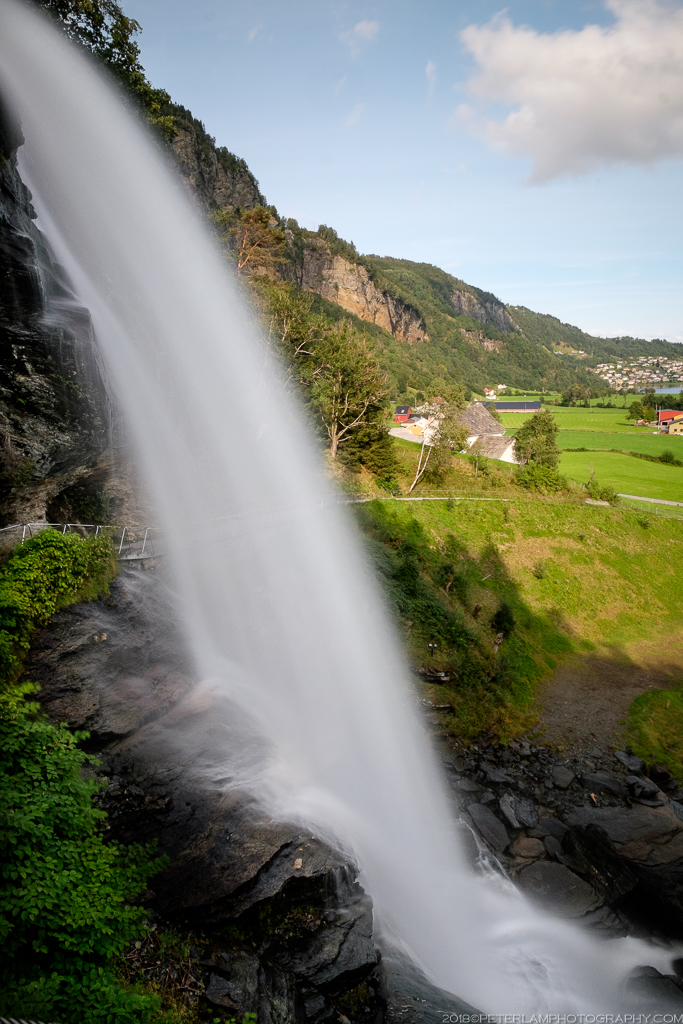 Backtracking in a westward direction, we trace the northern shore of Hardangerfjord before making another stop at the village of Steine, roughly half way between Eidfjord and Bergen. This is the location of Steinsdalsfossen, a 20-meter tall waterfall where a footpath leads behind rumbling water for a great view of they valley below.