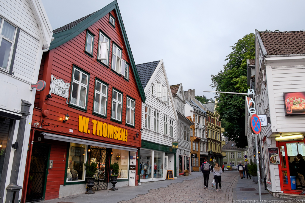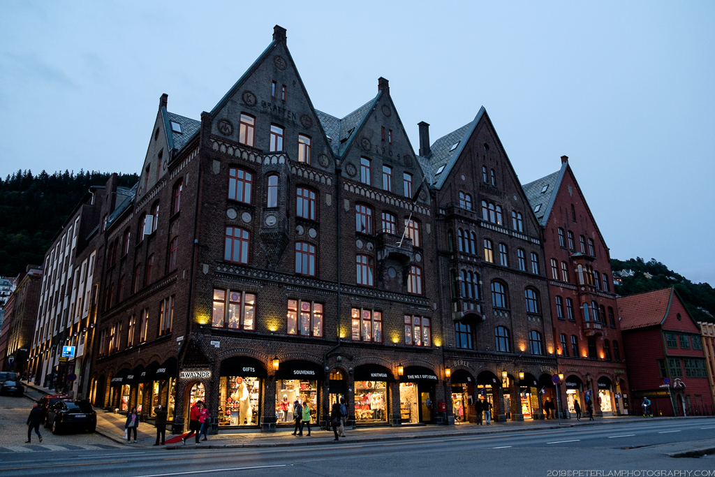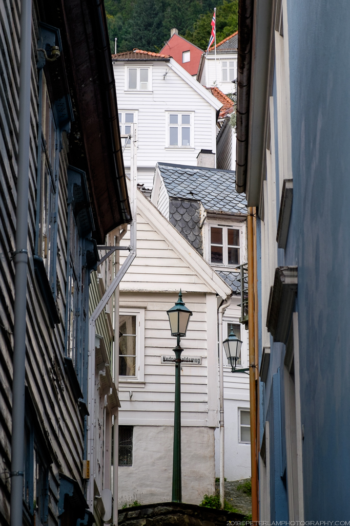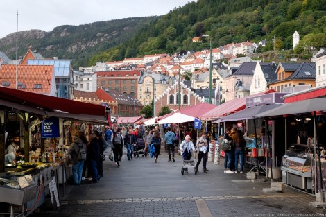 Bergen is the most hilly and mountainous city in Norway, much of it built on narrow streets and steep alleyways. The downtown core is centered around old Vågen harbour, where a bustling outdoor fishmarket is a major tourist draw. The atmosphere, cultural landscape, and colourful traditional architecture are themselves highlights of the city, perhaps more so than any particular attraction. Turn a corner and you’ll likely find a quiet street to explore far from the bustling crowds (especially on days when a cruise ship is in dock).