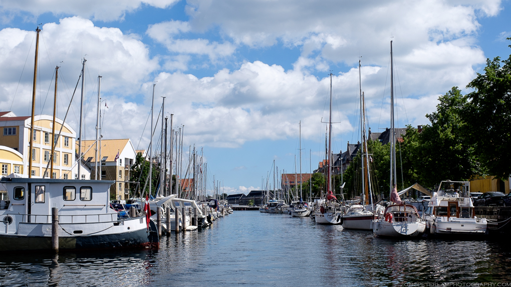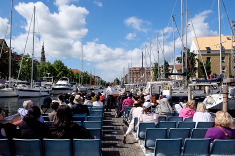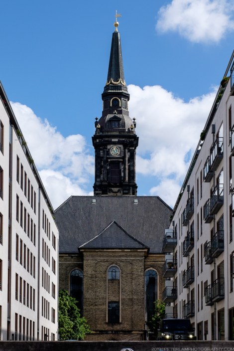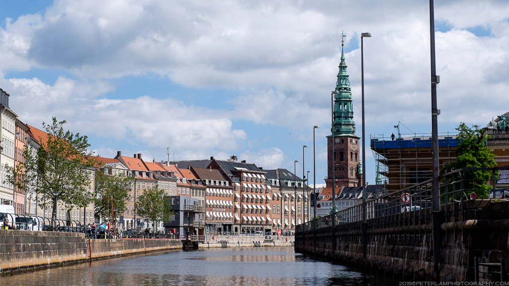 Entering the canals of Gammel Strand with St. Nicholas Church.