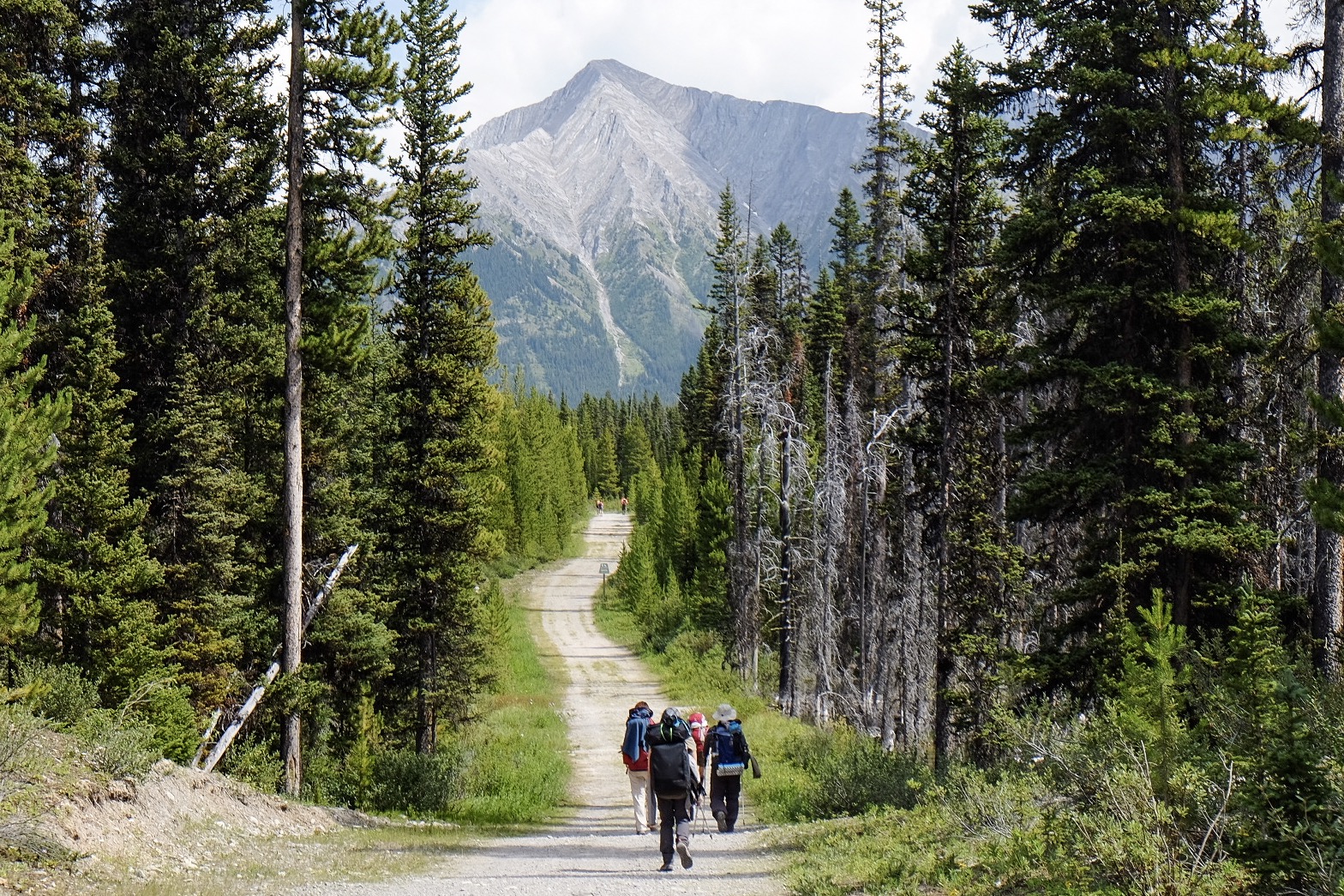 The last day, though long, is one of the easiest due to the relatively flat trail out to the Mount Shark trailhead. We take our time and enjoy the shaded forests and cool streams, a contrast from the more rugged scenery of the previous five days. Finally reaching our pre-arranged ride at the Mount Shark parking lot we’re elated at the prospect of showers and real food. A perfect end to another great adventure in the Canadian Rockies.