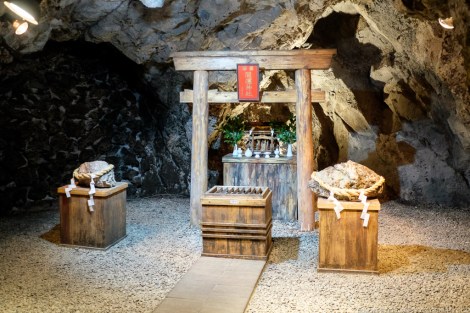 Located near Satsuma town, the Kinzangura Distillery (薩摩金山蔵) is unique in that it employs a disused gold mine for the production of its liquor. With a 350-year history and over 120 km of winding tunnels on several levels, the old mine was repurposed as the ideal place for shochu fermentation, maturation and storage. The deep mountain tunnels provide the perfect combination of stable temperature, consistent humidity, and protection from the elements.