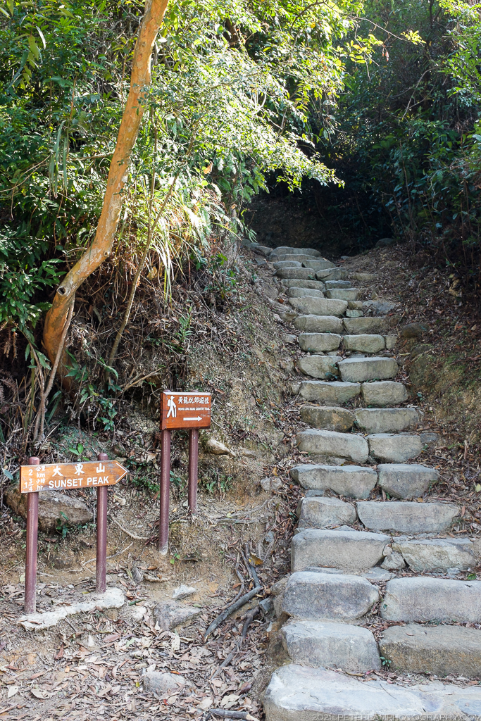 There are three approaches to the peak, all with varying difficulty but clearly marked as official hiking trails. The shortest and most direct is from the west starting at Pak Kung Au (伯公坳) mountain pass, and involves the least climbing. Alternatively you can hike from the east, starting at Nam Shan (南山) Campsite near Mui Wo town and follow Stage 2 of the Lantau Trail. This lengthy route was taken the last time I hiked the mountain a few years back. The third option is an approach from the north via the Wong Lung Hang (黃龍坑) Country Trail, which involves a relentless climb of over a thousand stone steps. Hiking challenge accepted!