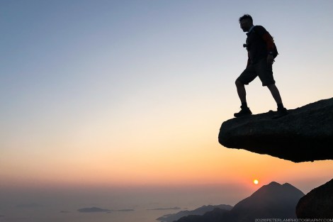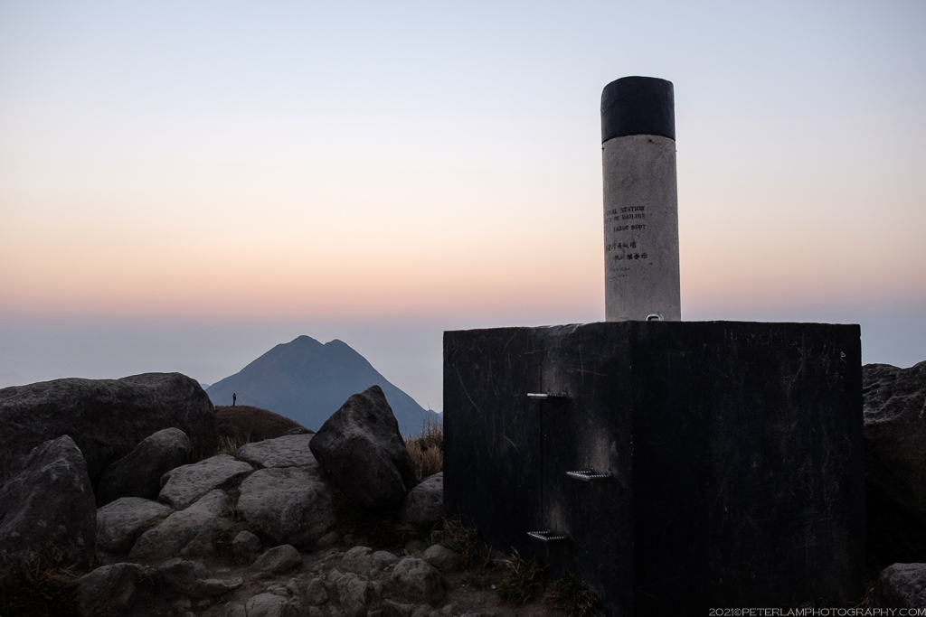 The Lantau Trail skirts just south of Sunset Peak, so to reach the actual summit you can follow any of the available side trails to the top. On most days (weekends especially) this area will be packed with hikers, so there is no chance of getting lost. On this beautiful evening, we arrived at the mountaintop just as the sun was setting behind Lantau Peak, easily recognizable with by its double-crested apex. There were also great views of Hong Kong International Airport just north of Tung Chung.